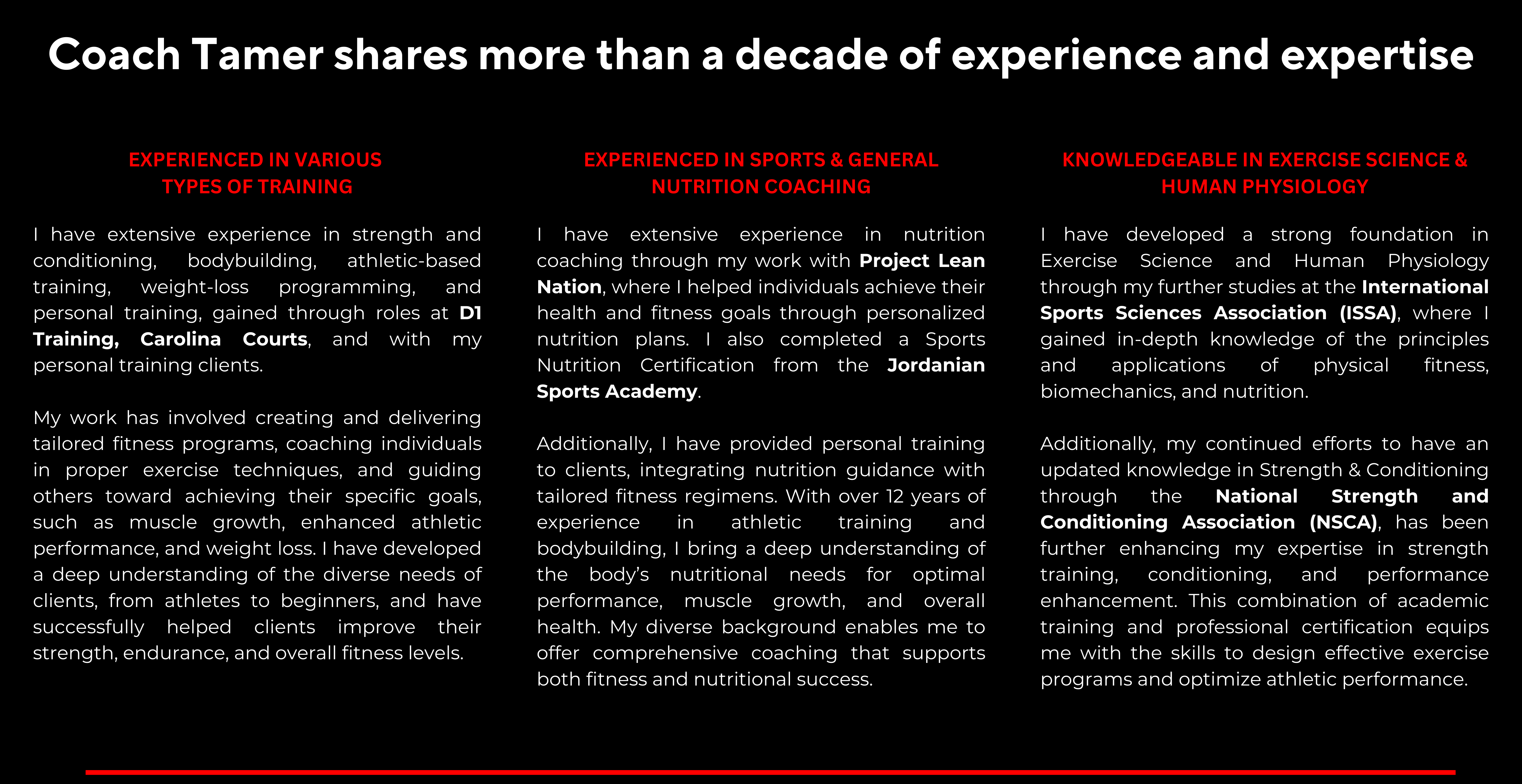 I’m a huge basketball and sports enthusiast, with over 12 years of strength training experience. I am passionate in helping men and women of all ages achieve their health and fitness goals through strength training, physical conditioning, sports performance & general nutrition consulting. I always strive to find new ways to make a difference in the lives of others, especially by investing in their overall health and well-being.